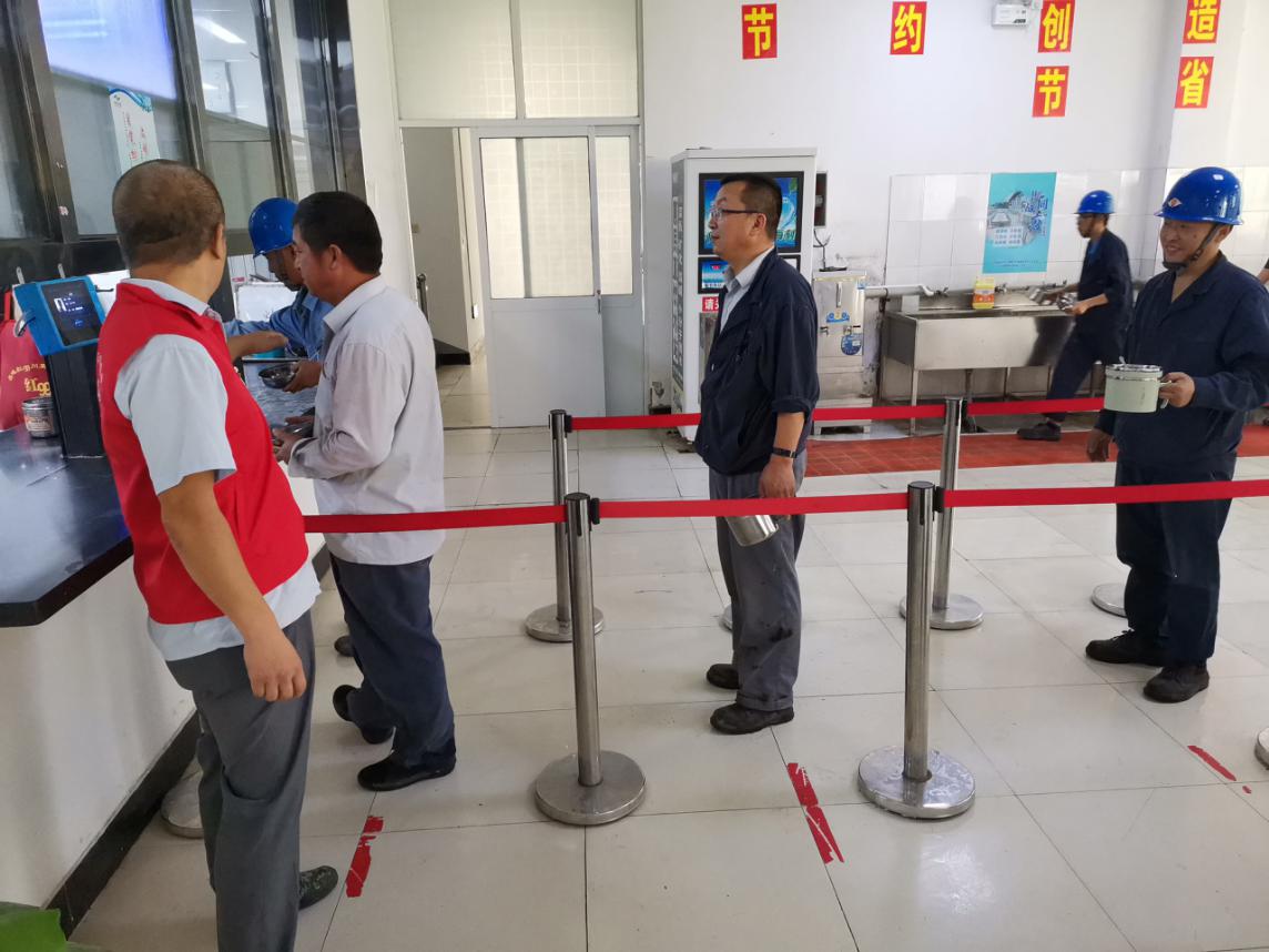 上午10:50 “文明餐桌志愿服務(wù)隊(duì)”成員已穿上紅馬甲,在職工餐廳集合,擺放好餐桌上的隔離擋板和椅子,規(guī)置好餐廳取餐窗口的警戒欄桿。11:00開(kāi)飯時(shí)間到,陸續(xù)有員工到達(dá),11:30各車間員工、外協(xié)檢修人員同時(shí)到達(dá)職工餐廳形成就餐高峰。通過(guò)“紅馬甲“的指引勸導(dǎo),職工們根據(jù)飯量不同,按需打菜,垃圾桶里剩菜剩飯明顯減少,取餐窗口排隊(duì)秩序井然,單人單桌就餐或雙人隔板就餐文明規(guī)范。